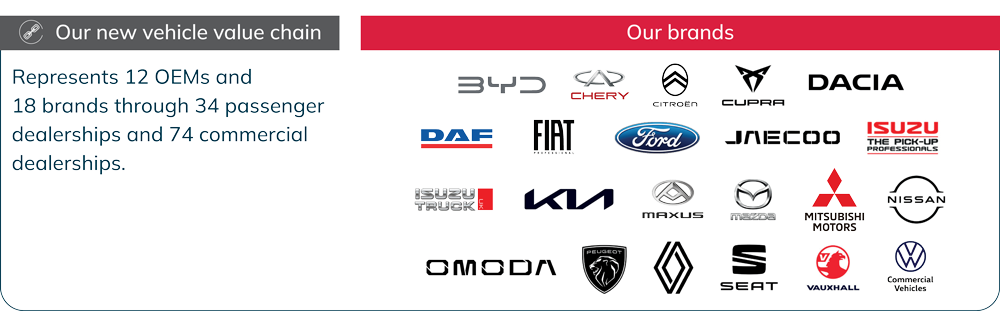 UK Retail represents 12 OEMs and 18 brands through ~108 dealerships (~74 commercial and ~34 passenger dealerships) located mainly in provincial areas.